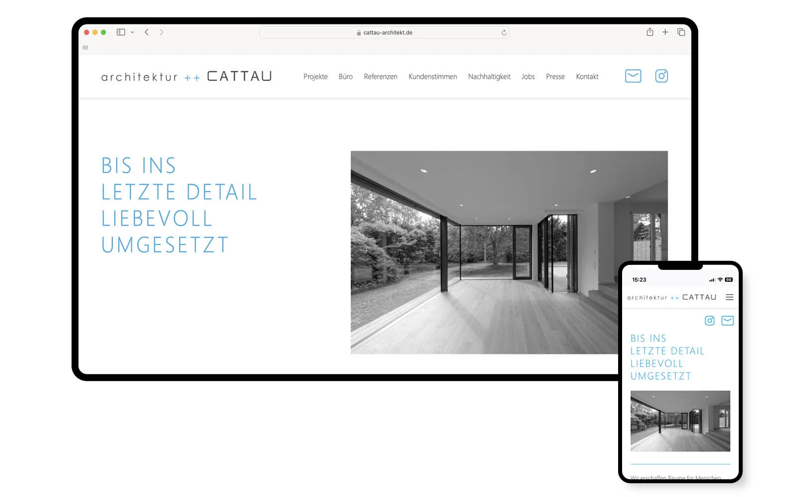 Diese Website wurde von Roman Korsch (www.musterknabe-hamburg.de/) konzeptioniert und gestaltet, ich habe die technische Umsetzung gemacht. Bei Cattau Architekten liegt die Kernkompetenz im Bereich der Sanierung, Revitalisierung, des Umbaus und der Erweiterung von Gebäuden. Zudem realisieren sie anspruchsvolle Neubauten.